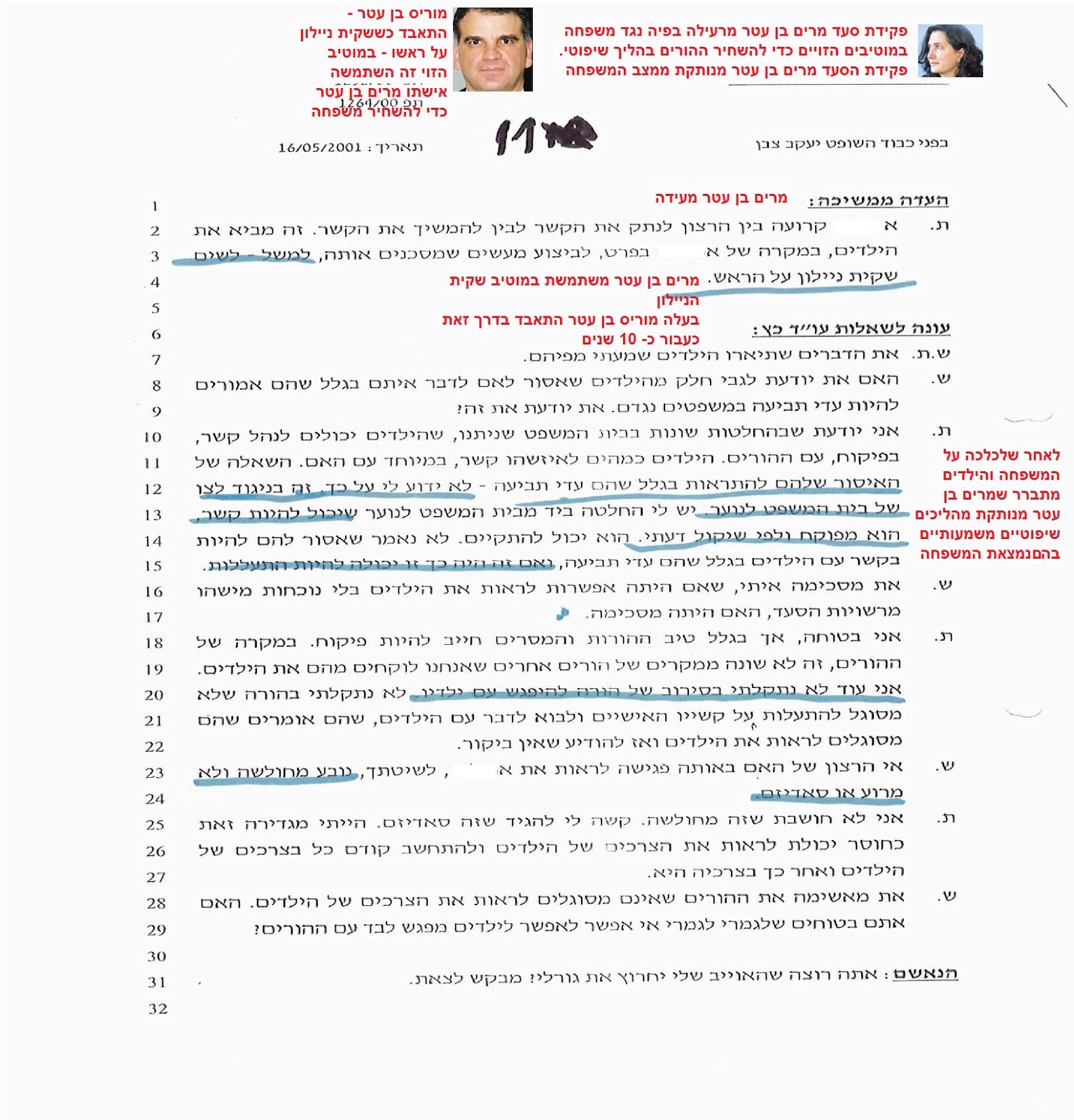 מרים בן עטר מנותקת מהמצב המשפחתי – כשנשאלה מרים בן עטר אם היא מודעת כי לחלק מהילדים אסור לפגוש את אימם עקב ההליך השיפוטי המתנהל נגדה, השיבה בן עטר כי אינה מודעת חרף היותה אחראית על הסדרי הראיה. מרים בן עטר קיבלה סמכויות סטטוטוריות נרחבות מבית משפט לנוער על משפחה ואינה מודעת כלל לנושאים רגישים מאוד במשפחה. מרים בן עטר  משמיצה את המשפחה כשאינה מעורה כלל במצב המשפחה.